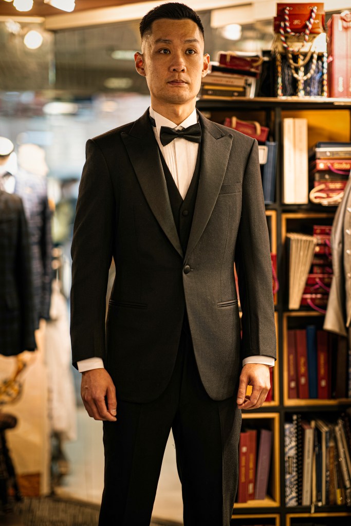 A tuxedo, also known as a dinner jacket or a black tie suit, is a formal ensemble typically worn for special occasions or events that require a high level of formality. It is a more refined and elegant alternative to a regular suit.